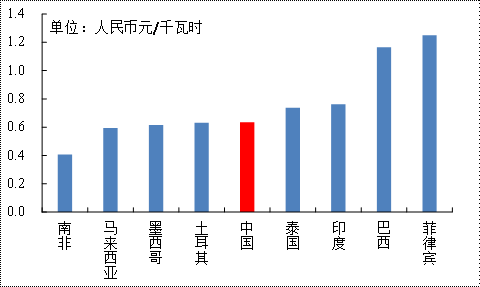 中國與有關國家電價比較情況(單位:元/千瓦時)