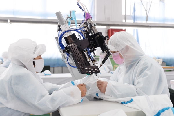 圖為際華3534公司醫用防護服生產現場。新興際華集團/供圖