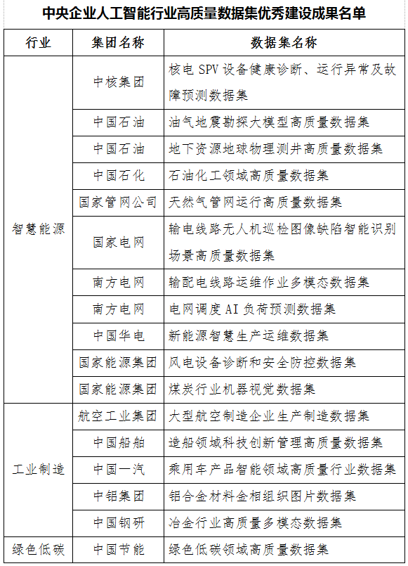 第八屆數字中國建設峰會期間,國務院國資委集中發布了首批10余個行業30項央企人工智能行業高質量數據集優秀建設成果;首批成立交通物流、綠色低碳、智慧能源等三大行業中央企業數據產業共同體,后續將梯次成立其他重點行業央企數據產業共同體,深化數據資源開發利用和開放共享,以高質量數據集建設賦能大模型訓練、助力高價值場景落地。