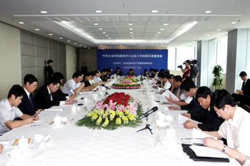 2009年6月9日,國資委規劃發展局組織部分中央企業在京召開了中央企業科技服務中小企業工作經驗交流座談會。會議目的是深入貫徹落實科學發展觀,貫徹落實國務院副總理張德江同志對中鋼股份科技服務中小企業經驗做法的批示精神,全面貫徹落實國務院關于發揮科技支撐作用,促進經濟平穩較快發展和關于保增長、擴內需、上水平等有關指示精神,分析當前形勢,總結經驗,進一步推動中央企業開展科技幫扶中小企業工作。會議由國資委規劃發展局副局長白英主持,國資委規劃發展局局長王曉齊、科技部政策體制司副司長李普及17家中央企業的代表出席了會議。