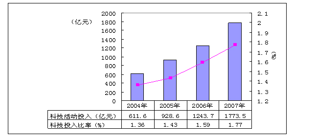 2004-2007年中央企業科技投入情況