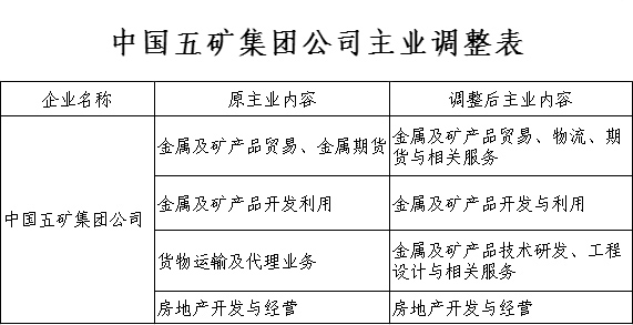 關于調整中國五礦集團公司主業的通知