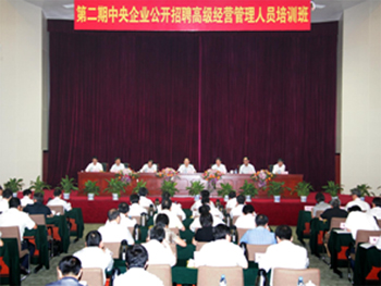 2008年7月9日至11日,國資委企干一局、企干二局、法規局聯合舉辦了第二期中央企業公開招聘高級經營管理人員培訓班,國資委副主任、黨委委員金陽出席開班式并做動員講話,2006年、2007年國資委公開招聘的中央企業高級經營管理人員共41人參加了培訓。