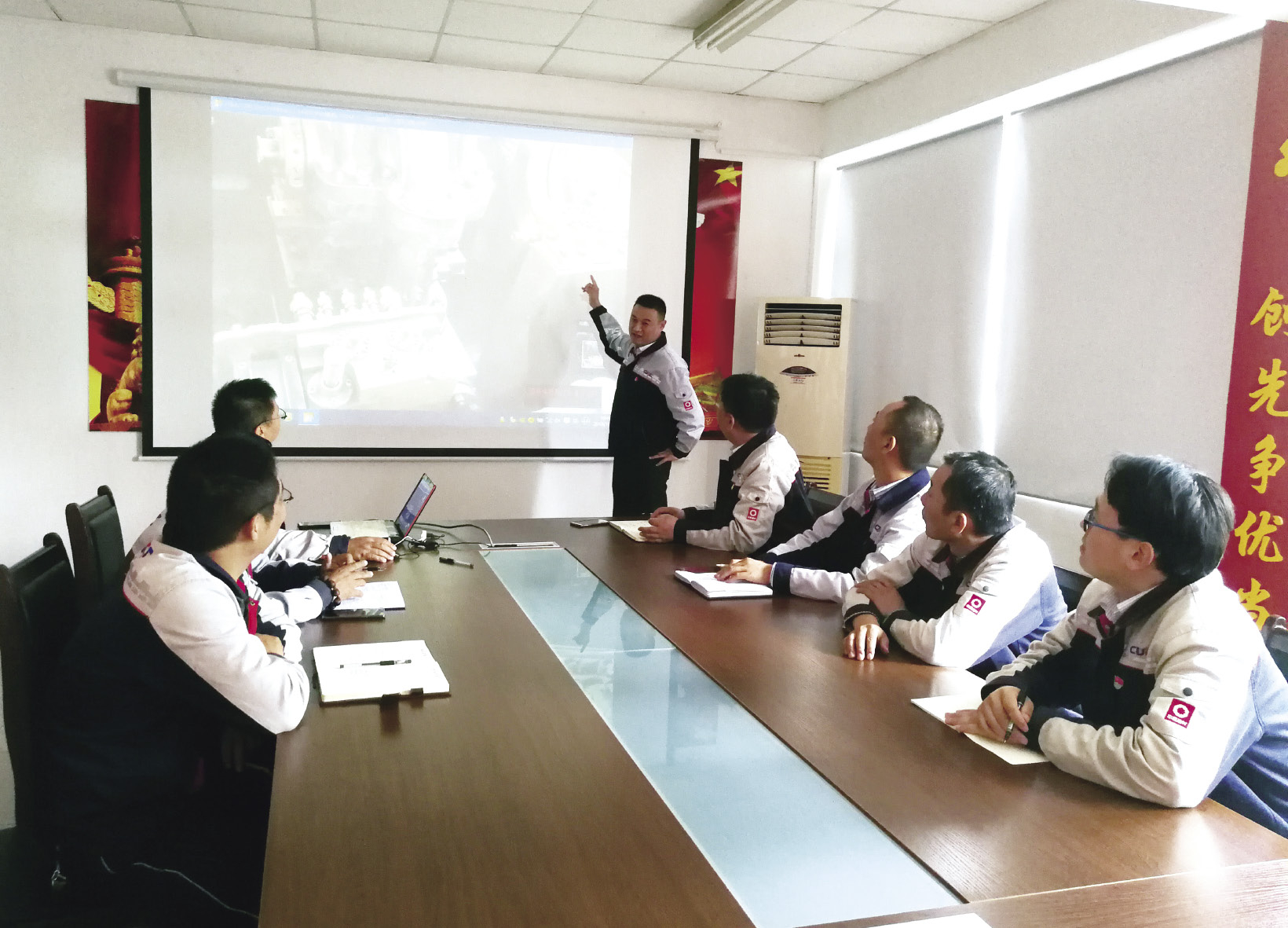 管隊伍,筑牢堡壘。有好隊伍才能有好業績,有好行動才能見好效果。魯城黨總支堅持在實踐中鍛煉人、培養人、提升人,開展了“爭做專家型黨員,鍛造忠誠擔當隊伍”系列活動,定期開展水泥工藝、生產流程、財務、安全等培訓,提升職業技能,培養專家型黨員,在設備維修前進行“專家會診”,確保了每次都是最佳方案。抓好黨員作用發揮,創造性實行了黨員“設備包保”制度,全體黨員根據自身強項每人“認領”一臺主機設備,設備“實名制”,問題“隨手拍”,把形式單一的設備管理寓于醒目鮮明的黨員包保牌中,常態化督促、警示黨員帶頭精檢細修、帶頭互控、帶頭消除安全隱患,做到關鍵設備有黨員包保,關鍵區段有黨員把關,使黨員的先鋒模范作用在各自崗位上得到更有效發揮。在推進全員營銷方面,魯城黨總支也走在了前面,率先推行了“一對一”包管機制。對區域十幾個鄉鎮,實行干部駐點服務,定期到訪和公布電話,用戶所有的需求,一個電話就全部解決,真正解決了“最后一公里”問題,做到了公司產品和服務全覆蓋、零盲區。