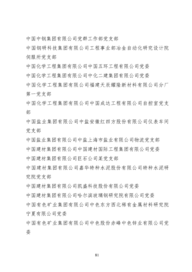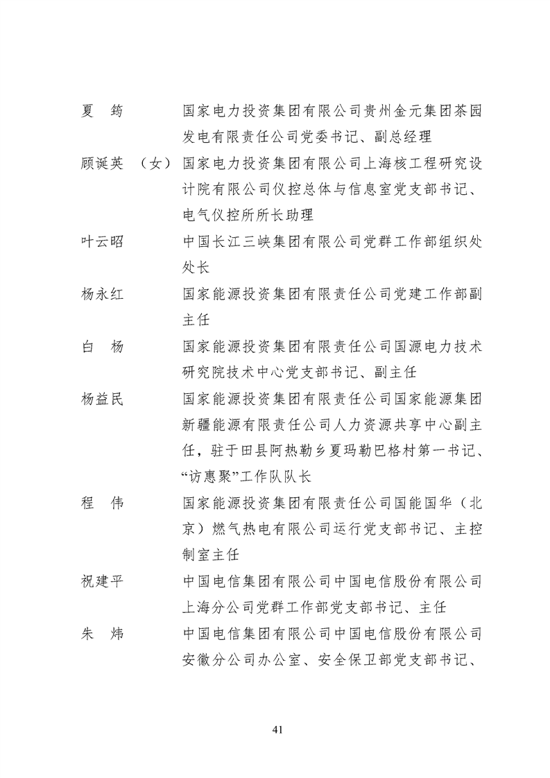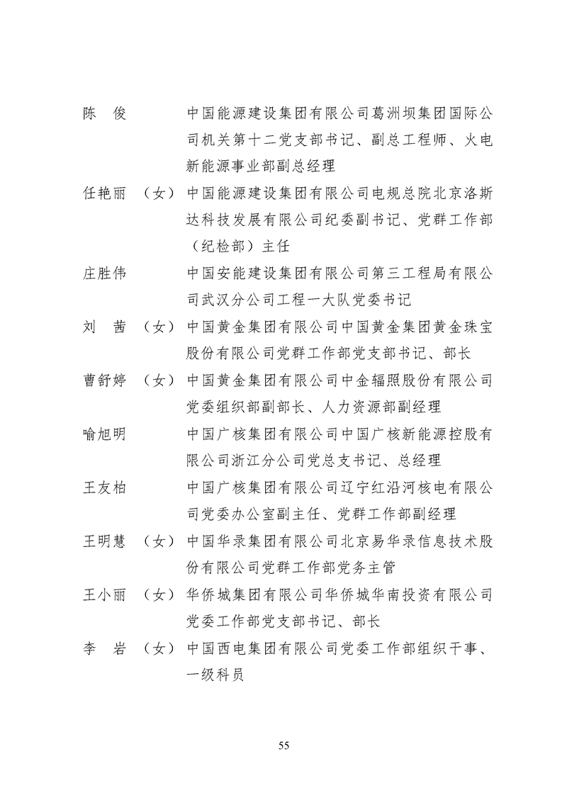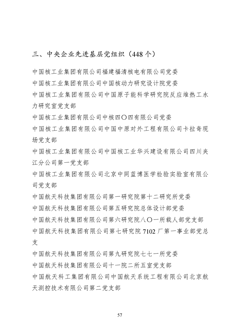 為表彰先進、弘揚正氣,激勵各級黨組織和廣大共產黨員在把握新發展階段、貫徹新發展理念、構建新發展格局中奮發有為、建功立業,國資委黨委決定,授予邢繼等338名共產黨員“中央企業優秀共產黨員”稱號(含追授2名),授予王軍艷等205名黨務工作者“中央企業優秀黨務工作者”稱號,授予中國核工業集團有限公司福建福清核電有限公司黨委等448個基層黨組織“中央企業先進基層黨組織”稱號。這次表彰的優秀個人和先進集體是中央企業各條戰線上的杰出代表,他們的先進事跡和崇高精神充分展示了新時代共產黨人的先進性和純潔性,生動詮釋了中央企業共產黨員的初心和使命,彰顯了國有企業先進精神的無窮偉力。