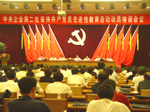 6月27日至28日,國資委黨委召開中央企業第二批先進性教育活動動員培訓會議,認真學習貫徹中央召開的第二批保持共產黨員先進性教育活動工作會議精神,部署中央企業第二批先進性教育活動,對在京的76戶中央企業先進性教育活動領導小組組長及辦公室主任,國資委黨委派出的19個督導組組長及成員進行培訓。國資委主任、黨委書記,國資委黨委先進性教育活動領導小組組長李榮融同志作動員報告。他強調,要深入學習貫徹中央關于開展先進性教育活動的一系列重要指示和胡錦濤總書記關于加強黨的先進性建設的重要講話精神,扎實做好先進性教育活動各個階段的工作,確保先進性教育活動真正成為群眾滿意工程,為提高中央企業的核心競爭力、促進中央企業的改革發展穩定做出新的貢獻。國資委副主任、黨委副書記,先進性教育活動領導小組副組長王勇同志作總結講話,他強調,各企業黨委(黨組)要進一步提高思想認識,把握工作重點,抓緊做好第二批先進性教育活動的各項起步工作,確保先進性教育活動順利健康開局、扎實有效推進。