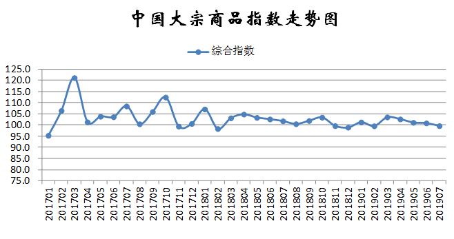由中國物流與采購聯(lián)合會(huì)調(diào)查、發(fā)布的2019年7月份中國大宗商品指數(shù)(CBMI)為99.6%,指數(shù)四連跌至近五個(gè)月以來的最低,表明大宗商品市場下行壓力較大。各分項(xiàng)指數(shù)中,供應(yīng)指數(shù)、銷售指數(shù)繼續(xù)回落,庫存指數(shù)連續(xù)回升,商品價(jià)格止跌。從指數(shù)的變化情況來看,隨著高溫多雨天氣增多以及環(huán)保限產(chǎn)全面推進(jìn),給供需兩側(cè)均帶來影響,特別是淡季來臨令市場需求縮減更加明顯,市場供大于求的跡象進(jìn)一步顯現(xiàn),商品庫存持續(xù)積壓。整體來看,8月份大宗商品終端需求難有改善,基本面將繼續(xù)承壓,市場存在進(jìn)一步調(diào)整的可能,后期隨著利好政策出臺和宏觀預(yù)期向好,加之季節(jié)性消費(fèi)的好轉(zhuǎn),預(yù)計(jì)市場在充分調(diào)整后有望迎來企穩(wěn)反彈。