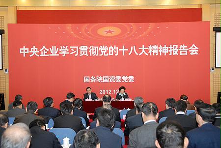 12月3日,國資委黨委在京舉辦中央企業學習貫徹黨的十八大精神報告會,國資委副主任、黨委委員黃丹華同志出席會議并講話。會議邀請中央政策研究室副主任潘盛洲同志作了黨的十八大精神輔導報告。