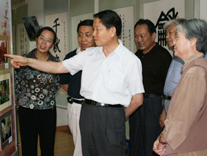 9月26日下午,國(guó)資委主任、黨委書記李榮融來(lái)到南線閣機(jī)關(guān)離退休干部活動(dòng)中心觀看了離退休干部喜迎“十七大”書法繪畫攝影展。參觀過(guò)程中,李榮融非常高興,稱贊老同志的書法繪畫攝影水平一年比一年好。李榮融主任還看望了在活動(dòng)站開(kāi)展各種娛樂(lè)活動(dòng)的老同志,同他們親切交談,并囑咐大家,一定要加強(qiáng)鍛煉,保重身體。