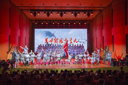 文藝演出分為旭日東升、火紅年代、世紀春潮、光耀中華四個篇章,分別展現建黨到建國、建國到改革開放、十一屆三中全會以來特別是以習近平同志為核心的黨中央全面從嚴治黨、深化改革所取得的偉大成就。我委選送的情景表演《過雪山草地》由近百名離退休老同志用混聲合唱和舞蹈等藝術形式,再現了紅軍將士“革命理想高于天”的偉大精神。演出氣勢恢宏、表演細致,現場觀眾的反響熱烈,得到中央國家機關工委領導、其他部委有關領導高度贊揚。