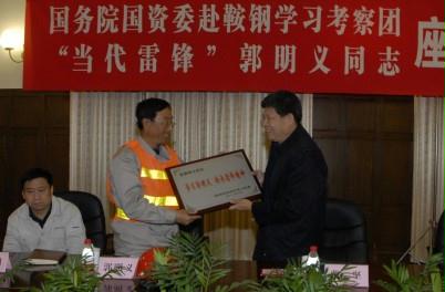 “國資委直屬機關郭明義愛心團隊”與“當代雷鋒”郭明義同志進行了座談交流,向郭明義同志贈送了“學習郭明義,傳承雷鋒精神”牌匾,向郭明義愛心團隊長期資助的20名貧困學生捐贈了國資委直屬機關廣大干部職工在今年五四期間募捐的愛心善款46226.50元、筆記本電腦以及《現代漢語詞典》等物品。活動期間,愛心團隊參觀了鞍鋼股份煉鐵總廠新3號高爐、熱軋帶鋼廠2150生產線、冷軋廠2130生產線,并沿著郭明義同志上下班的路線參觀了他的工作單位齊大山鐵礦;還參觀了孟泰塑像、化工總廠雷鋒紀念館以及郭明義愛心工作室。國資委機關青年還與鞍鋼青年就“如何將學習郭明義落到實處”、“如何在管理提升活動發揮青年生力軍作用”、“青年如何在立足崗位中建功成才”等話題進行了熱烈深入地研討交流。通過考察活動,愛心團隊一行實地感受了郭明義同志立足本職、無私奉獻的崇高精神和鞍鋼先進的企業文化,接受了一次深刻的思想教育和精神洗禮。