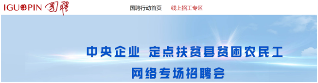 國務(wù)院國資委提出,央企要采取線上直接投放具體崗位、線下與定點扶貧縣進行供需對接等多種方式開展招聘活動。線上招聘以中國國際技術(shù)智力合作有限公司、國投人力資源服務(wù)有限公司分別建設(shè)運營的中智招聘網(wǎng)和國聘網(wǎng)為依托,開設(shè)定點扶貧縣貧困農(nóng)民工網(wǎng)上招聘專欄,優(yōu)化招聘流程,提高招聘的效率和精準(zhǔn)度。