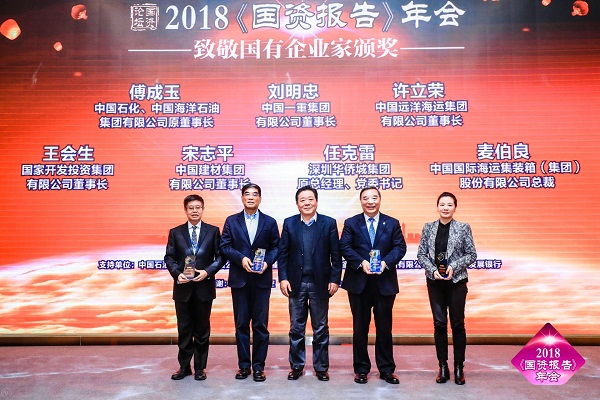 2019年1月10日,《國資報告》雜志以“致敬40年 弘揚企業(yè)家精神”為主題舉辦年會,向袁庚等為國企改革作出積極貢獻的企業(yè)家致敬,原國有重點大型企業(yè)監(jiān)事會主席趙華林為傅成玉、王會生、劉明忠、宋志平、任克雷等企業(yè)家代表頒獎。