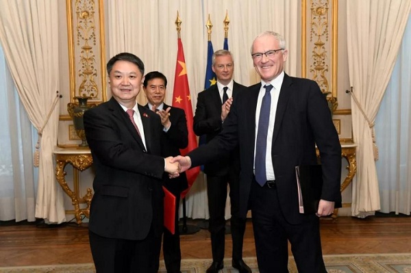 當地時間3月25日晚,中國華電集團有限公司與法國電力集團在巴黎舉行合作簽約儀式。中國華電董事長、黨組書記溫樞剛,法國電力集團董事長兼總裁樂維代表雙方交換簽約文件。