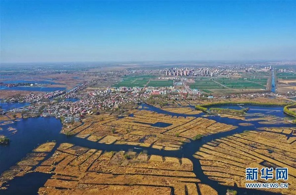 2019年3月31日,無人機拍攝的雄安新區(qū)白洋淀。