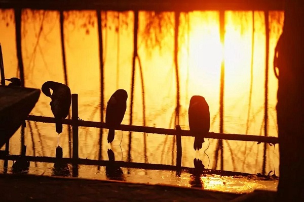 鸕鶿在白洋淀休憩。