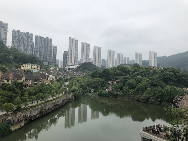 風(fēng)景優(yōu)美的成都祥福生活垃圾焚燒發(fā)電廠區(qū)。