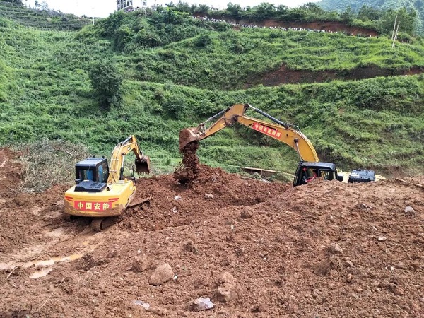 截至7月25日下午14時,中國安能已在滑坡體A區搜救出3名失聯人員。目前,4臺挖掘機正在協同對滑坡體A區的7名失聯人員展開搜救。