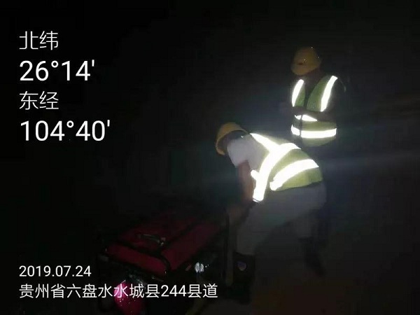 南方電網貴州電網公司成立工作組趕赴現場,貴州六盤水供電局立即啟動社會突發事件供電保障Ⅳ級響應。截至7月24日18:00,南方電網共出動搶修救援人員68人,車輛8臺次,10米燈塔4臺,應急發電機6臺,發電車3臺。