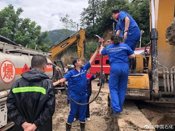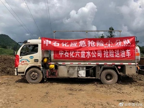 中國石化六盤水石油分公司第一時間與當地政府取得聯系,組織油罐車就近從交通加油站將1500升油緊急運往災區,確保災區應急救援車輛的正常油料供應。