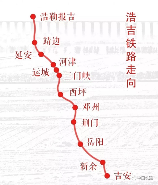 浩吉鐵路起自內(nèi)蒙古鄂爾多斯市浩勒?qǐng)?bào)吉,終至江西省吉安市,途經(jīng)內(nèi)蒙古、陜西、山西、河南、湖北、湖南、江西等7省(區(qū)),線路全長1813.23公里,規(guī)劃輸送能力超過2億噸/年,是國內(nèi)規(guī)模最大的運(yùn)煤專線。這個(gè)長度,這個(gè)力氣,和我們的經(jīng)濟(jì)體量,很配。