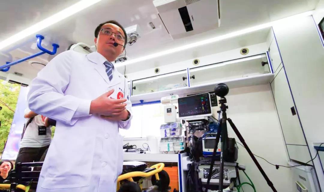 在浙醫(yī)二院的中國移動5G救護(hù)車?yán)?,醫(yī)療人員正在講解5G給救護(hù)帶來的改變。通過5G技術(shù),醫(yī)生可以通過遠(yuǎn)程的數(shù)據(jù)采集對患者進(jìn)行救護(hù),大大增加“黃金時間”。
