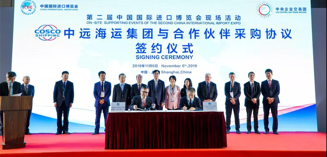 中遠海運集團所屬企業與來自日本和新加坡等國的全球合作伙伴簽署了多份采購協議。其中,中國船舶燃料有限公司和中石化中海船舶燃料供應有限公司與供應商簽訂了船用燃料油采購協議,南通中遠海運川崎船舶工程有限公司與供應商簽訂了船舶設備和船用鋼板采購協議。
