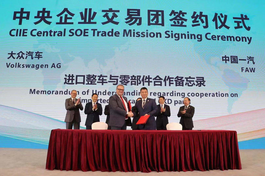 中國一汽與大眾汽車(中國)投資有限公司簽署進口整車與零部件合作備忘錄。