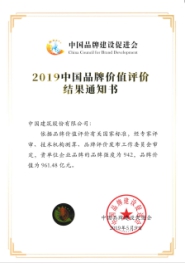 中國(guó)品牌價(jià)值評(píng)價(jià)結(jié)果通知書(2019)