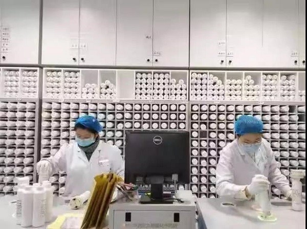 位于湖北省中醫院光谷院區的華潤三九智能化中藥房項目的調劑員們,日以繼夜地分配急需的醫療物資
