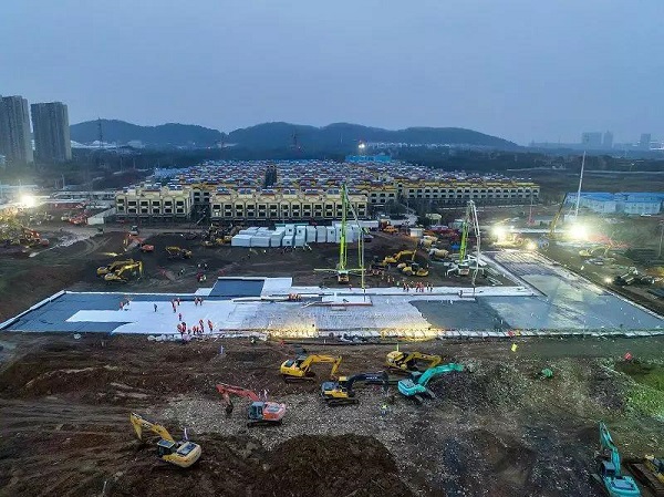 1月25日,由中國建筑中建三局牽頭實施的武漢火神山醫院正式開工,醫院總建筑面積3.39萬平方米。截至1月28日12時,第一棟箱式板房開始搭設,地下管網鋪設同步全面展開,現場進度正在快速推進,火神山醫院效果圖正式發布。1月25日下午,由中建三局承建的武漢雷神山醫院進場準備,建筑面積約3萬平方米初定新增床位超過1300張。截至1月28日12時,醫療隔離區管線溝槽開挖、貝雷梁安裝全部完成,醫護人員住宿區開始搭設板房。截至1月28日,中國誠通所屬物流企業為武漢雷神山醫院運送鋼材611噸;在此過程中,國家電網做好電力設施配套。招商局中國外運緊急協調車輛資源,滿足火神山醫院承建方的卡車用車需求,并將2000箱食品救援物資發運至火神山醫院;中國電信、中國移動、中國聯通、中國信科、諾基亞貝爾、中國鐵塔等企業緊密配合、協同作戰,火神山、雷神山5G高清手機實時直播通道均已成功開通。