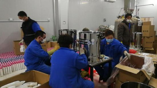 在組織生產(chǎn)防治疫情藥品方面,新興際華天津金匯藥業(yè)集團被天津市政府列為新型冠狀病毒疫情防控物資生產(chǎn)重點監(jiān)控企業(yè),為防控疫情提供消毒產(chǎn)品,主要有抑菌皂、液體皂、洗手液和75%乙醇、84消毒液等。天津金匯全部員工提前返崗復工,開足馬力、加快節(jié)奏。目前,已發(fā)出洗手液5000瓶,75%乙醇5000瓶。其它產(chǎn)品也正在緊急生產(chǎn)中。
