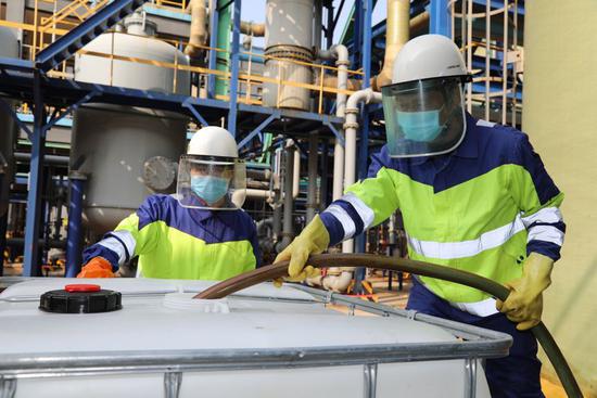 中國石油吉林石化公司第一時間抽調(diào)精干力量,加班加點生產(chǎn)84消毒液的主要原料次氯酸鈉。
