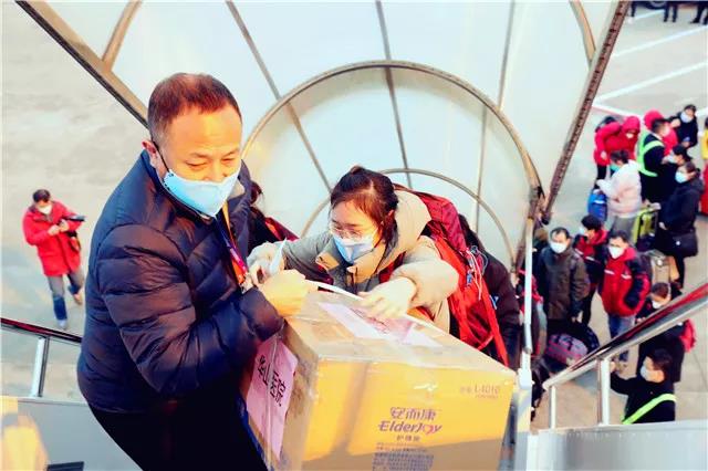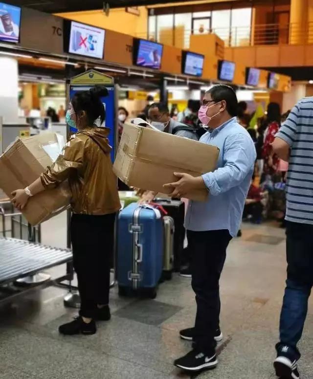 1月30日下午,DD3116航班從泰國曼谷飛往江蘇南通,機上國家電網南通供電公司朱力家庭、如東供電公司黃文濤和陳海華3個家庭,包括9歲的娃娃都充當搬運工,隨機搬回146箱防疫物資。