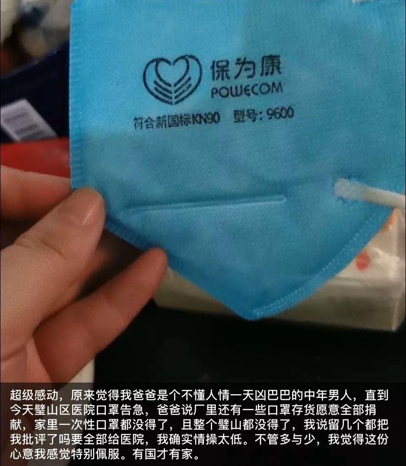 1月30日,重慶璧山志愿者團隊向社會募捐用于醫院一線抗擊疫情的應急口罩,正在璧山家中的兵器裝備集團長安汽車員工王茂霖與家人一同了解了相關情況,堅定地選擇響應募捐。得知父親所在單位還余有約一千只N90口罩,1月31日,王茂霖一家花費超過7個小時的時間,驅車前往四川廣安取回口罩,前往已經同志愿者團隊聯系好的重慶市璧山區人民醫院,分秒不停地把950只口罩送到抗擊疫情的一線去。