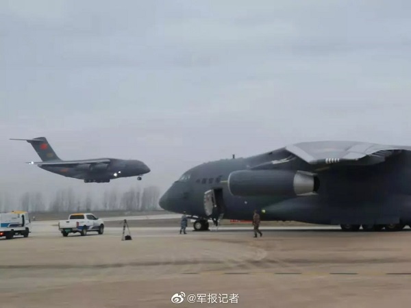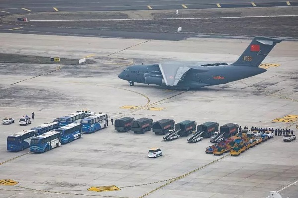 國產運20大飛機向武漢空運醫療隊員和醫療物資