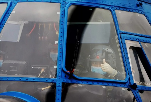 2月12日,應湖北省疫情防控指揮部請求,中部戰區緊急調派由航空工業研制生產在駐鄂空降兵某空中突擊旅直升機團服役的兩架國產直8大型運輸直升機,由武漢市向襄陽、宜昌地區轉運口罩、防護服、手套、藥品等600件共計4噸防疫醫療急需藥品和緊缺物資。