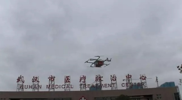 首架“疫情區應急作業”無人機降落金銀潭醫院投送防疫物資