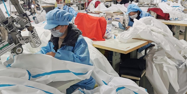 由于大多數企業都是第一次生產防護服,人員、裝備、原料、資質……一道道難題猶如一道道關卡,如何解、如何過?