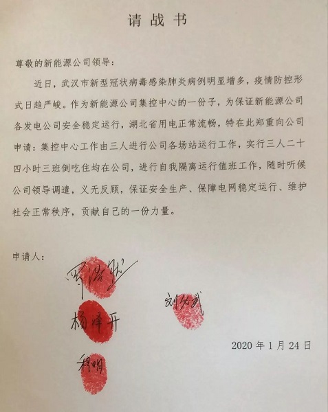 羅浩然帶領(lǐng)集控中心其他3名值班員寫下請(qǐng)戰(zhàn)書