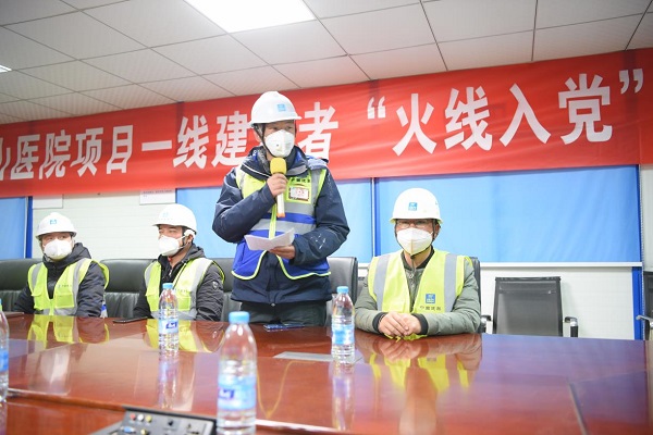 2月2日,中建三局火神山醫(yī)院項(xiàng)目現(xiàn)場(chǎng)指揮部臨時(shí)黨委研究并報(bào)中建三局黨委,同意金暉、潘吉建、張克強(qiáng)等8名同志“火線入黨”。現(xiàn)場(chǎng),金暉作為預(yù)備黨員代表表態(tài):“加入中國(guó)共產(chǎn)黨是一份光榮,更是一份責(zé)任,我們?cè)竿蠹乙坏溃煌跣模挥?jì)回報(bào),逆風(fēng)而行。”工程建設(shè)爭(zhēng)分奪秒,全員都投入在施工一線,入黨儀式后,預(yù)備黨員立刻回到各自崗位,為沖刺項(xiàng)目交付節(jié)點(diǎn)全力拼搏,終于保證醫(yī)院如期交付投用。
