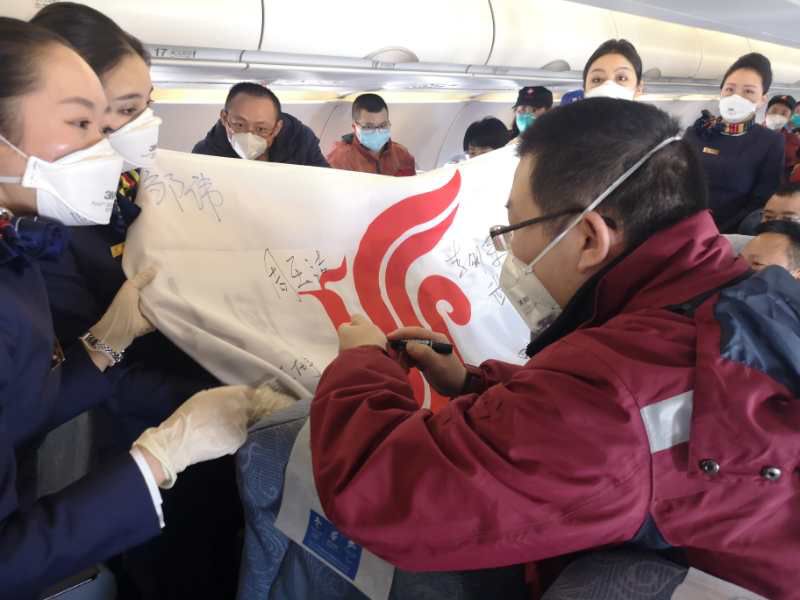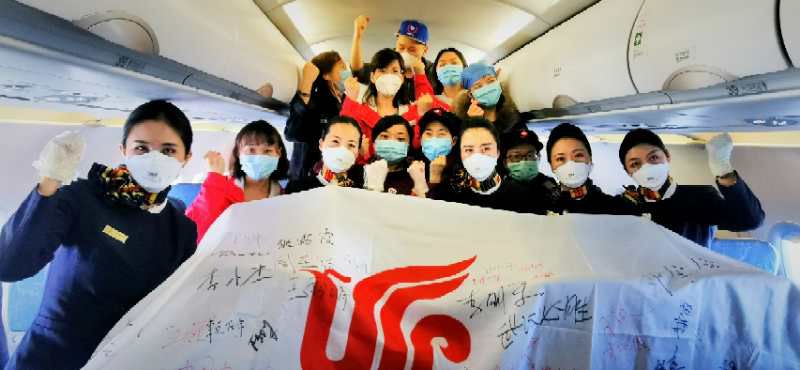 終于等到了接你們回家的時刻!無比敬意,無尚榮光!記得在大年初一,舉家團圓的日子,你們卻成為第一批勇敢的逆行者。機艙口話別時我們共同約定:武漢加油,平安歸來!口罩遮住了你的面龐,但遮不住你堅定的目光,我不知道你的名字,但我知道你是白衣天使。在那個沒有硝煙的戰場,你們用愛與責任托起生命之重。你們的勇敢前行,激勵著我們讓每一個‘飛往春天的航班’起降安妥。一次次馳援包機就是希望的繼續,一次次安全飛行就是勝利的開始。在暫時分別的日日夜夜,國航一直在牽掛著你們,期盼著你們的歸來。今天我們終于等來你們平安回家。萬米高空,春花盛開。在今天這個令人難忘的時刻,讓我們一起高喊:武漢加油,中國雄起!