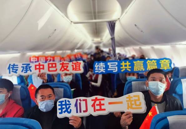中國能建葛洲壩集團131名員工包機返回赴巴基斯坦項目一線,同機抵達的還有2.5萬袋肺炎1號和肺炎2號中藥等防疫物資