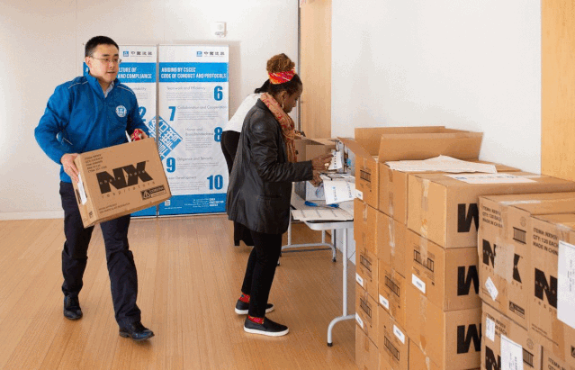 中建美國合規專員KendelleRuth Argretté監督物資清點管理工作