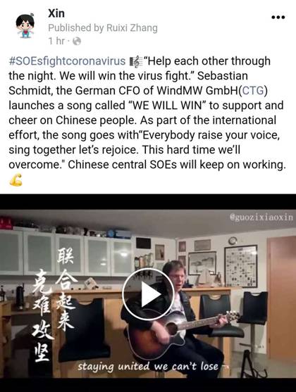 Facebook平臺發布三峽德國員工抗疫原創歌曲