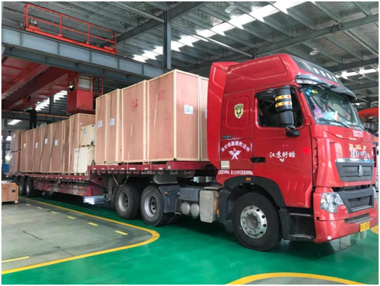 3月19日,滿載國機集團下屬中國恒天集團有限公司旗下的邵陽紡織機械有限責任公司(以下簡稱“邵陽紡機”)兩條熔噴無紡布電氣控制柜的大掛車順利抵達中國石化儀征化纖安裝現場,連同3月17日鋼架平臺現場安裝完成,邵陽紡機“戰時速度”贏得贊譽。