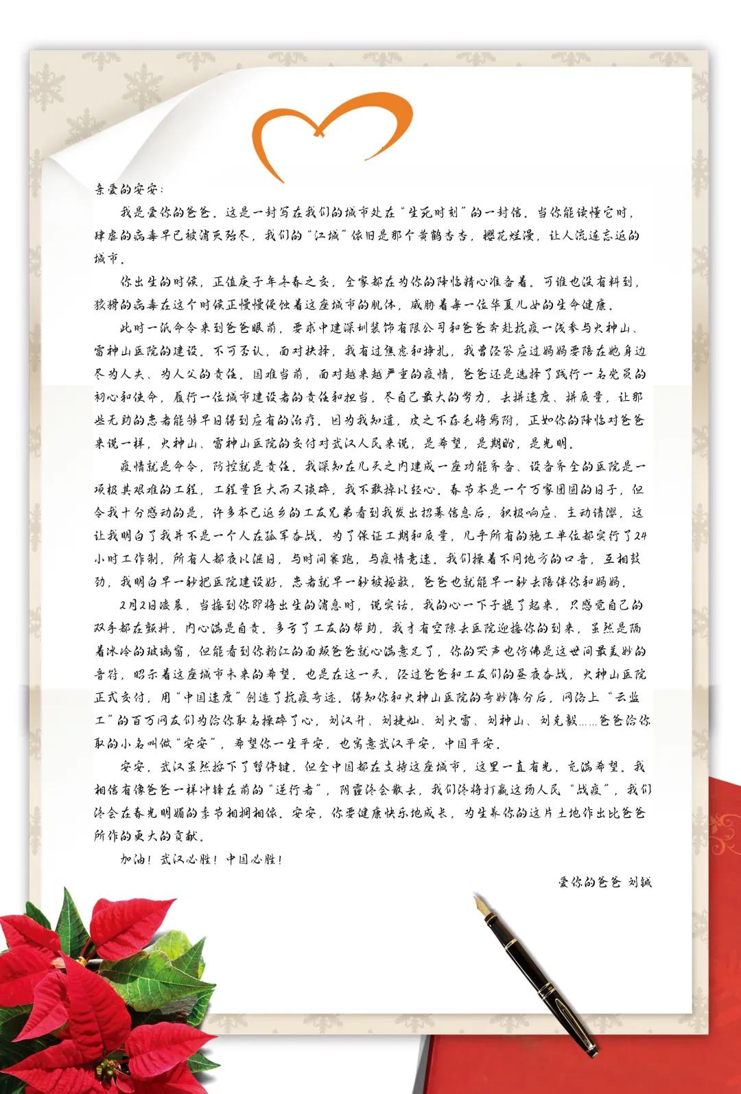 談到以后將如何向兒子描述這段“戰役”,劉鋮表示:“在他即將出生的時候,我正在從雷神山趕往火神山的路上。當時為他寫了一段話,想告訴他,由于這次新冠肺炎疫情很嚴重,全中國的人都被隔離在家,即使如此,仍然有很多人選擇了‘逆行’,爸爸也是其中一名。為了建成這兩座醫院,大家付出了太多太多,親身感受到‘中國速度’,這就是一個奇跡。‘兩山’醫院就是重癥患者的諾亞方舟,給了他們生的希望。”