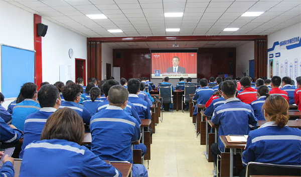 中國建材集團(tuán)邯鄲碲化鎘項(xiàng)目部員工在項(xiàng)目現(xiàn)場(chǎng)觀看十三屆全國人大三次會(huì)議開幕會(huì)直播。