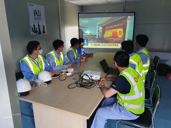 國機(jī)集團(tuán)CMEC第五工程成套事業(yè)部巴基斯坦塔爾II區(qū)塊露天煤礦項(xiàng)目部黨員組織觀看十三屆全國人大三次會(huì)議開幕會(huì)直播。