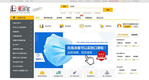 守望相助,共抗疫情。在疫情期間,易派客平臺由原本主營的化工、材料、設備、電儀等專業(yè)工業(yè)品品類,迅速聚焦到防疫物資的生產(chǎn)及銷售,充分發(fā)揮了平臺的資源優(yōu)勢、理念優(yōu)勢及服務優(yōu)勢,實現(xiàn)了工作重心的快速轉(zhuǎn)型。